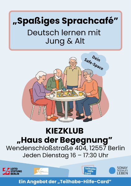 Jeden Dienstag von 16:00 bis 17:30 im Kiezklub "Haus der Begegnung".