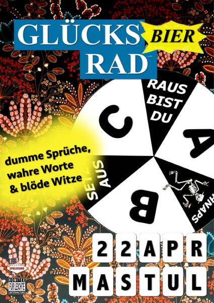 Dreh am unberechenbaren Rad, wähle die richtigen Buchstaben aus, löse die spannende Worträtsel "blöde Sprüche, schlechte Witze & das glaubst du nicht". und gewinne ein exotisches Bier.