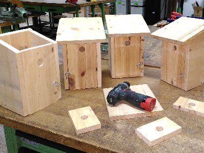 Wir bauen zusammen Häuschen (Nisthilfen) für Bienen und Vögel