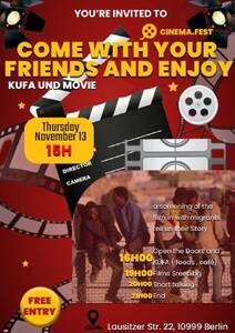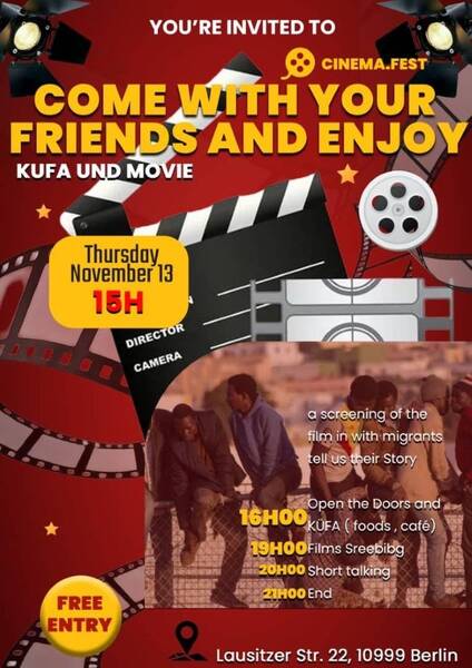 16:00 open doors and Küfa (donation based foods & café) 19:00 film screening 20:00 short talking 21:00 end Come with your friends and enjoy Küfa and Movie!