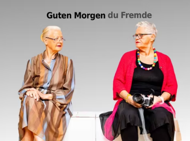 Ein Morgen in einem Berliner Park, es könnte bei uns nebenan sein: zwei sehr unterschiedliche Frauen begegnen sich zufällig. Fremdheit liegt zwischen ihnen in der Luft. Da beginnen sie sich zu erinnern und nehmen uns mit auf eine Zeitreise durch ihr langes Leben im Osten und Westen der Stadt. Ein buntes Puzzle aus schrillen und komischen oder stilleren, poetischen Momenten setzt sich vor unseren Augen zusammen. Auf ihrer Zeitreise erleben die beiden Frauen, wie sich Fremdheit auch ins Vertraute einschleicht: beim kritischen Blick in den Spiegel, in Familienbeziehungen oder mitten in den Berufsalltag. Der Morgen im Park fliegt dahin, aber die Begegnung hinterlässt Spuren – auf Wiedersehen du Fremde!