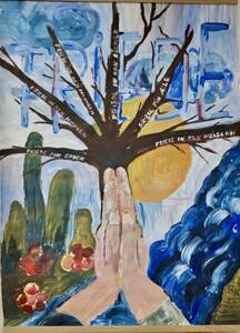 Die Künstlerin Christel Bachmann leitete diesen Workshop und betreute die Besuchenden. Gemeinsam sprach man über Themen und künstlerische Umsetzung. Sieben großformatige Bilder mit eingebunden Zitaten aus verschiedenen Religionen und Sprachen entstanden und hängen nun als kleine Ausstellung in unserer Artothek.Am Mittwoch, 28.01.2026 treffen wir uns zur Finissage mit Christel Bachmann und den Workshop-Teilnehmerinnen. Sie sind herzlich eingeladen Ihre Gedanken mit uns zu teilen.