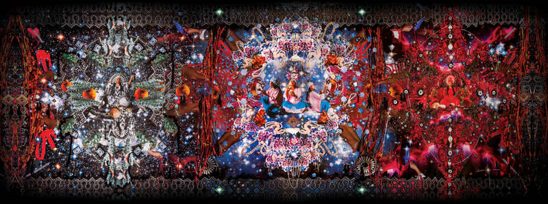 Aliwaa Collective: Die Wandcollage The Story of Waleka wurde vom Aliwaa Collective geschaffen. Das Aliwaa Collective besteht aus Sindri Gonzales Ipuana (Wayuu-Weberin aus Kolumbien), Stefannia Doria (Kuratorin aus Kolumbien) und Raquel van Haver (Künstlerin aus Kolumbien und den Niederlanden).