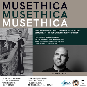 Am 11. Mai 2025 startet die erste Musethica-Session in Kooperation mit der Odesa National Academy of Music in der Ukraine. Drei ukrainische Musiker*innen schließen sich mit Berliner Musikstudierenden zusammen und gestalten gemeinsam eine Konzertwoche in Berlin. Sie alle nehmen am Ausbildungsprogramm von Musethica teil. Das Ziel: jungen Musiker*innen die Möglichkeit zu bieten, eine Vielzahl an Konzerten innerhalb weniger Tage zu spielen - und damit Menschen zu erreichen, die aufgrund ihrer jeweiligen Lebenssituation nicht die Möglichkeit haben, ein Konzert zu besuchen.