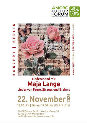 Im AMORC-Kulturforum singt am kommenden Samstag die Sopranistin Maja Lange Lieder von Richard Strauss, Johannes Brahms und Richard Wagner, begleitet von Stefan Paul auf dem Klavier. AMORC - Die Rosenkreuzer ist eine philosophisch-mystische Vereinigung, die die höheren Gesetze der Natur und des Kosmos erforscht. Viele suchende Menschen gehen und gingen diesen Weg, heute wie vor Hunderten von Jahren. Sie betrachten und nutzen AMORC und seine Lehren als praktische Lebens-Philosphie. Gäste sind willkommen. Eintritt frei
