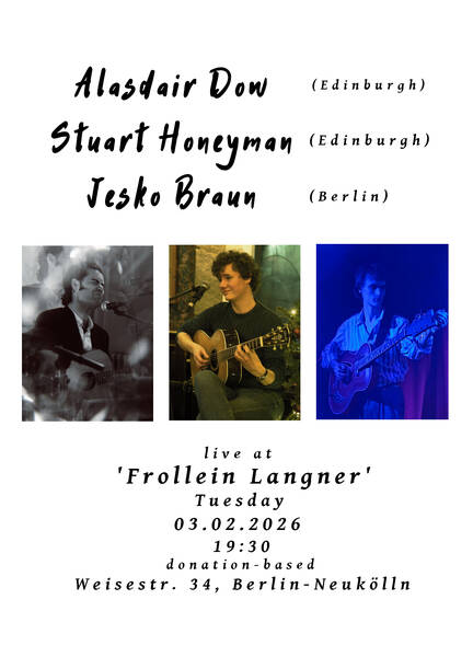 Edinburgh-based singer-songwriter and guitarist Alasdair Dow has been featured on BBC Radio 2 and has played at UK and international festivals. He gigs regularly in Edinburgh and beyond whilst building his original songbook which touches on folk, blues, rock, soul and classic pop.