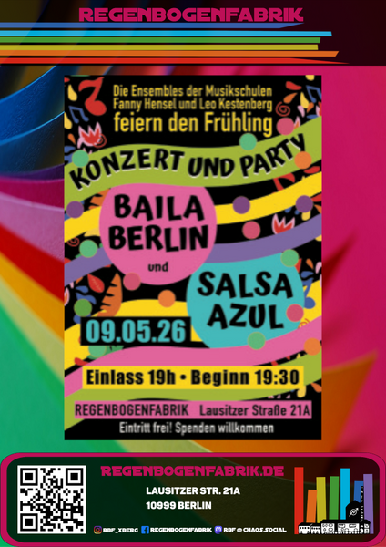 Die Salsaband „Baila, Berlin“ der Leo Kestenberg Musikschule besteht seit 2007. Sie wird von der Latin- und Salsa Musik Expertin Maike Scheel geleitet.