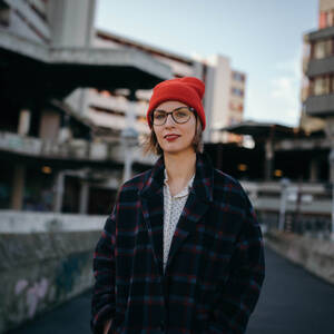 Beim LOGOSKOP wird Pauline Füg sowohl solo als auch im Duo im Team großraumdichten zu erleben sein. Sie präsentiert Texte, die zwischen Intimität und gedanklicher Wucht changieren: präzise beobachtend, atmosphärisch verdichtet, mit einer Präsenz, die das Publikum unmittelbar mitnimmt. Fügs Performances leben von feinen Nuancen, rhythmischen Spannungen und einer Sprechweise, die Stille genauso ernst nimmt wie Lautstärke. Ein Abend, der nicht nur Sprache in Bewegung zeigt, sondern auch eine Künstlerin, die Poesie denkt, fühlt und hörbar macht.