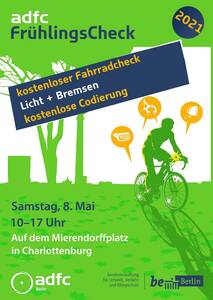 Sind Sie und Ihr Fahrrad nach dem Winter wieder fit für den Straßenverkehr? Bei unserem Fahrrad-Checks reparieren unsere Mechaniker Ihr Rad und ADFC-Profis testen Ihr Fahrrad und Wissen zum Thema Verkehrssicherheit. ADFC-Mechaniker*innen prüfen Ihre Fahrräder auf Verkehrssicherheit und machen Licht- und Bremsanlagen fit. Auch kleinere Reparaturen erledigen sie kostenlos direkt vor Ort. Außerdem codieren wir bei Bedarf Ihr Fahrrad von 10 bis 17 Uhr.
