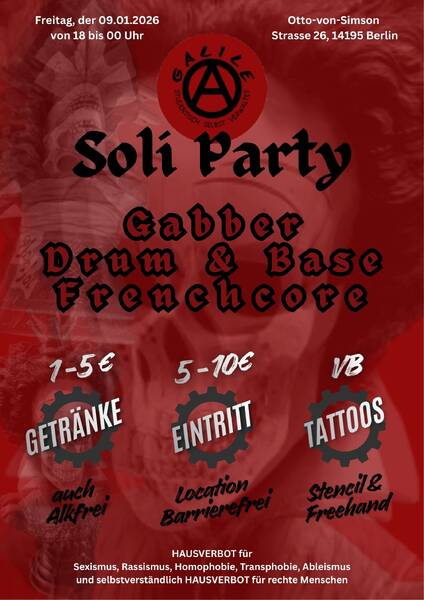 Es wartet neben einem gootlosen Lineup auch ein Tattoo-Stand von 18 bis 23Uhr auf euch. Stencils und Freehand für kleine Preise direkt mit den Artistinnen absprechen. Kommt gern früh vorbei:Das GalileA ist gegenüber von der Otto-von-Simson Strasse 26, 14195 Berlin.