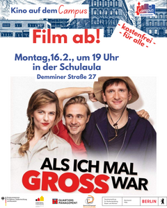 Campus auf dem Kino im Brunnenviertel zeigt am Montag, 16. Februar, um 19 Uhr den Familienfilm "Als ich mal groß war". Eintritt frei. Schulgelände ist am Abend offen. Einladung an alle, keine Schulveranstaltung.