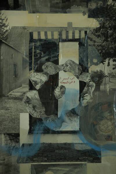 Diese Frage ist Ausgangs-punkt und Resonanzraum zugleich. Collage funktioniert hier als künstlerisches Prinzip, um Brüche, Spuren und Stimmen zu verbinden. Sichtbares und Unsichtbares, Vergangenes und Gegenwärtiges greifen ineinander und öffnen ein Feld, in dem Erinnerung zu Handlung wird. Die Arbeiten folgen Bewegungen zwischen Palästina, Kuwait, den Emiraten, dem Libanon, Syrien, der Ukraine und dem geteilten Deutschland bis in die Gegenwart Berlins. Aus diesen Überlagerungen entsteht kein geschlossenes Narrativ, sondern ein Gewebe aus Fragmenten, das die Möglichkeit des Fortbestehen befragt. أﻣل )amal, arabisch für Hoffnung) zeigt sich als stille Beharrlichkeit des Weiterwirkens. Sie ist kein Versprechen für die Zukunft, sondern eine Präsenz im Jetzt, eine Ausdauer, die bleibt, wenn Sprache versagt. Hoffnung أﻣل erinnert daran, dass Wahrheit sich nicht zum Schweigen bringen lässt. Eines Tages kehrt sie zurück –durch die Stimmen derer, die nicht aufhören zu sprechen.