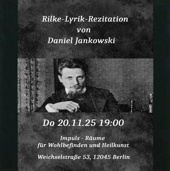 Anlässlich des Rilke-Jahres biete ich in Berlin die Möglichkeit Rilke-Gedichte zu hören. Es werden auch einige Lichtobjekte zu sehen sein. Der Schwerpunkt liegt aber an diesem Abend auf der Poesie. Es ist eine persönliche Auswahl an Texten, die mich teils über viele Jahre begleitet haben. Der Ort ist lauschig und wir sitzen auf Kissen und Decken beisammen und es gibt genügend Raum für einen Austausch nach der Rezitation.