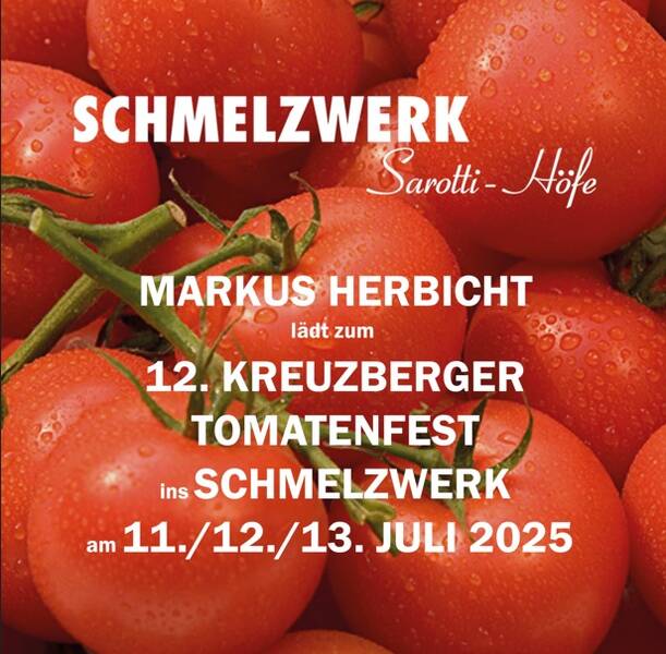 Genießen Sie zum 12. Mal alles rund um das Thema Tomate im historischen Schmelzwerk mit begrünter Terrasse in den sommerlichen Sarotti-Höfen. Markus Herbicht hat sich auch für dieses Jahr wieder besondere & außergewöhnliche Gerichte rund um das beliebte Nachtschattengewächs einfallen lassen.