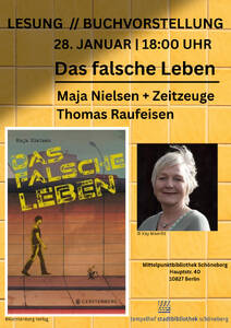 Am Mittwoch, den 28. Januar 2026 um 18 Uhr liest die Autorin Maja Nielsen in der Mittelpunktbibliothek Schöneberg aus ihrem Buch "Das falsche Leben". Anschließend gibt es ein Gespräch mit dem Zeitzeugen Thomas Raufeisen. Einfach vorbeikommen, ohne Anmeldung für junge Erwachsene und Erwachsene!