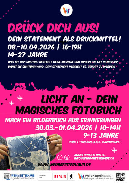Dieser Workshop führt in die faszinierende Technik der Cyanotypie ein – eine der ältesten fotografischen Drucktechniken. Mit Sonnenlicht, Formen, Pflanzen oder kleinen Gegenständen entstehen Bilder in leuchtenden Blautönen. Aus den entstandenen Bildern gestalten wir ein eigenes kleines Fotobuch voller Erinnerungen, Fantasie und Entdeckungen.