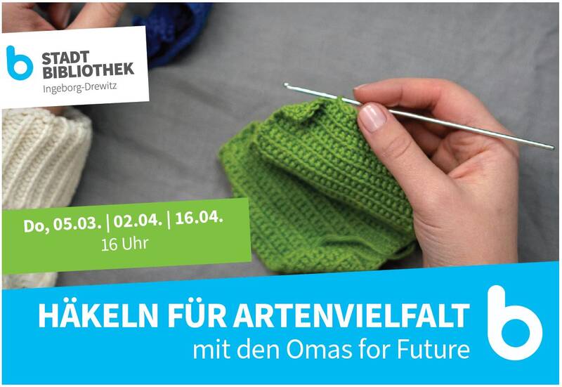 Auch zuhause können Blüten gehäkelt werden. Die fertigen Werke können anschließend in der Bibliothek in den bereitgestellten Korb gelegt oder persönlich abgegeben werden.