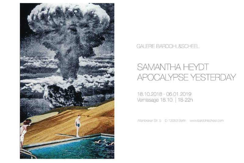 Transformation der globalen Landschaft unter der Last der Industrialisierung ist das zentrale Thema ihrer Arbeit. In APOCALYPSE YESTERDAY kommuniziert Samantha Heydt dies mit unterschiedlichen Medien: Collagen, Objekte und Fotografien werden mit klassischen Merchandising-Produkten kombiniert und thematisieren Konsumverhalten und materielle Ungleichheit, menschliche Selbstgefälligkeit und den Einfluss der Medien in einer Welt, die auf reine Profitorientierung reduziert wird.