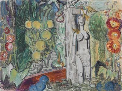 Mit Charles Crodel (1894-1973) widmet sich die Galerie Mutter Fourage erneut einem Maler, der in den 20er und 30er Jahren in der Freien und Berliner Secession ausstellte. Seine Malerei wurde anfänglich durch den Expressionisten Ernst Ludwig Kirchner und durch Edvard Munch beeinflusst. Reisen nach Nord- und Südeuropa sowie seine klassische Bildung prägten nach 1923 seinen unverwechselbaren poetisch-lyrischen Stil in der Malerei, Grafik, Wandgemälden und Kirchenfenstern. Mehr als 50 Arbeiten, die in der Ausstellung zu sehen sind, zeigen eine lebenslange Schaffensfreude, die trotz nationalsozialistischer Repressalien ungebrochen blieb. Crodels Malerei wird ergänzt durch großvolumige und expressive Raku-Keramiken des international bekannten Künstlers Martin Mindermann (*1960).