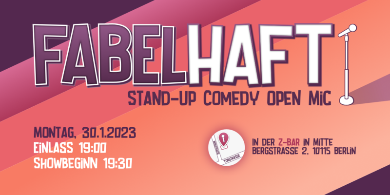 Die Show Bei Fabelhaft Comedy erlebt ihr jeden zweiten Montag, wie die größten Talente der Berliner Comedy-Szene ihr neuestes Material testen und alte Gags rund spielen. Freut euch auf authentische Stand-Up-Comedy mit gestandenen Profis und hungrigen Anfängern.