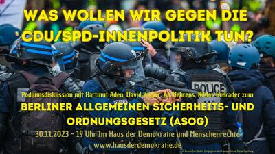 Die vorherige Berliner Regierung wollte mit der Novelle des Allgemeinen Sicherheits- und Ordnungsgesetz (ASOG) einen liberalen Gegenentwurf zu Polizeigesetzen anderer Bundesländer schaffen. Die aktuelle CDU/SPD-Regierung setzt auf Repression: Flächendeckender Einsatz von Bodycams bei Polizei, Feuerwehr und Ordnungsämtern, auch in privaten Wohnräumen, Videoüberwachung, verhaltensbezogene Kontrollen und verstärkter Einsatz von Taser, Quellen-TKÜ und Online-Durchsuchung werde geprüft, Verlängerung des Präventivgewahrsams von zwei auf fünf Tage. Dies soll in den nächsten Monaten umgesetzt werden begleitet von zusätzlichen Maßnahmen im Görlitzer Park und am Leopoldplatz. Wird die Stadt dadurch sicherer? Wie wichtig sind Prävention und gute Sozialpolitik (vor allem Bildung, bezahlbare Wohnungen und gute Arbeit) bei einer rationalen Innen- und Sicherheitspolitik? Wir diskutieren mit Fachleuten und Initiativen über die ASOG-Novelle und auch welche Möglichkeiten des Protests dagegen möglich sind.