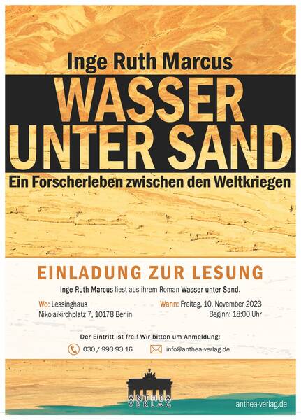 Inge Ruth Marcus stellt ihren neuen Roman "Wasser unter Wüsten - Ein Forscherleben zwischen den Weltkriegen" vor.