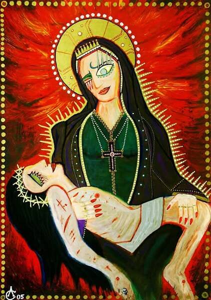 Die aktuelle Ausstellung FUTURE ICONS der Berliner Künstler-Gruppe X JOY X möchte zum kritischen Diskurs über die Themen Religion und Fanatismus einladen und ein Zeichen für Offenheit, Toleranz und Frieden setzen! Geld, Konsum und individuelle Selbstoptimierung erscheinen als die "neuen Götzen" westlicher Werteordnungen. Autoritäre Strukturen nehmen weltweit zu. Künstliche Intelligenz führt zu einer zunehmenden Entmenschlichung und Social Media - in all ihrer kurzlebigen Oberflächlichkeit - können tiefergehende Werte nicht ersetzen.Doch was SIND diese tiefergehenden Werte in postmodernen Gesellschaften...? Werden Religionen heute noch gebraucht oder führen sie gar zu einer Beschränkung für individuelle Freiheit und Demokratie? In Zeiten von religiös motiviertem Terror, fundamentalistischem Extremismus und Nationalismus sowie Kindesmissbrauch durch "fromme Priester" erscheint uns diese Frage aktueller den je... Die Ausstellung "FUTURE ICONS" möchte dazu Denkanstöße geben tradierte Vorstellungen hinterfragen und eine Möglichkeit zur kritischen Sinnsuche bieten... Provokant und teilweise ironisch, wird der Begriff der Ikonenkunst erweitert und in moderne Zeiten transferiert. Die neu entstehenden Zusammenhänge und Ausdrucksformen bieten Spielraum für progressive und undogmatische Interpretationsmöglichkeiten.