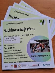 Am 21. Juni, dem Tag der Fete de la musiuqe, starten wir in den musikalischen Sonnabend mit unserem Kiezfest von 12 bis 16 Uhr. Wir sagen auch Nachbarschaftsfest dazu. Mit Musik, Bühne, Essen, vielen Ständen von Einrichtungen aus dem Kiez und viel Gelegenheit, die netten Nachbarn zu treffen und viel Platz, den nicht so netten aus dem Weg zu gehen. Wird lustig! Kommt dazu!