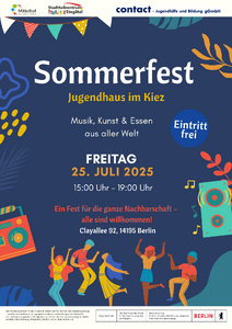 Wir laden alle Interessierten aus der Nachbarschaft und Umgebung herzlich zu unserem Sommerfest ein! Es gibt Spiele für Kinder, Kunstaktionen, Live Musik und leckeres Essen.