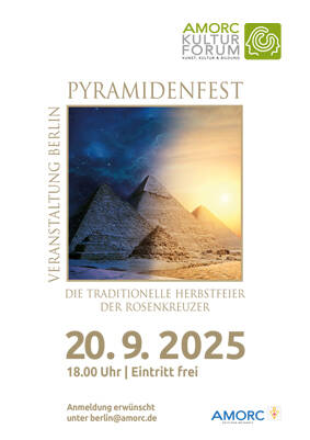 Symbolische Feier zur Herbst-Tag- und Nachtgleiche: Wie jedes Jahr um diese Zeit erbauen wir eine Pyramide aus Steinen, als Symbol für die allmähliche Entwicklung des Bewusstseins der Menschheit. Wir gedenken dabei all jener, die schon vor uns an der Pyramide gebaut haben; all jener, die gleich uns dieses Werk heute fortsetzen und jener, die es irgendwann in ferner Zukunft vollendet haben werden. Mit einer besonderen Zeremonie gedenken wir der Geschichte der Rosenkreuzer und dem Bau der geistigen Pyramide. Dafür möge jede/r einen Stein mitbringen.