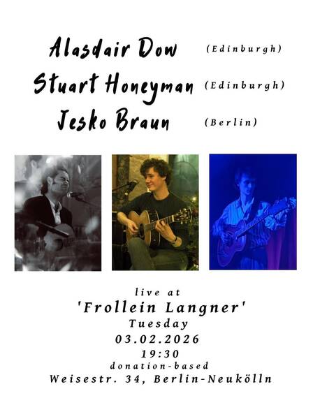 Alasdair Dow and Stuart Honeyman from Edinburgh, Scotland on Tuesday, February 3rd, at @frolleinlangner ! Show starts at 19:30.