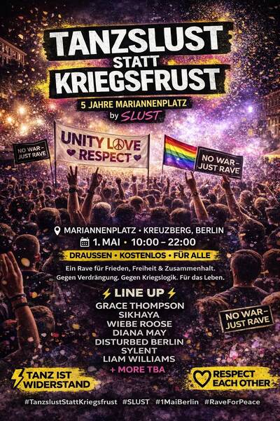 Bringt eure Freund:innen, eure Energie & eure Liebe. Lasst uns gemeinsam zeigen, wie Berlin klingt, wenn Menschen zusammen tanzen – nicht gegeneinander, sondern miteinander.