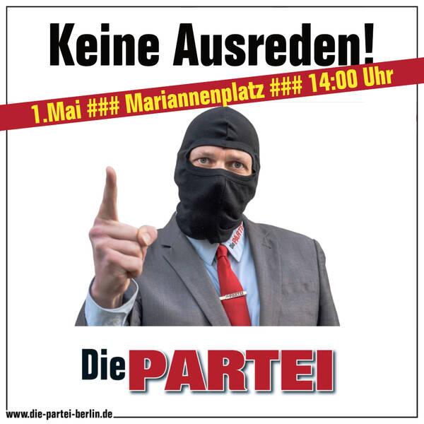 Die Partei ### Am 1. Mai auf dem Mariannenplatz ### 14 Uhr ### Keine Ausreden!