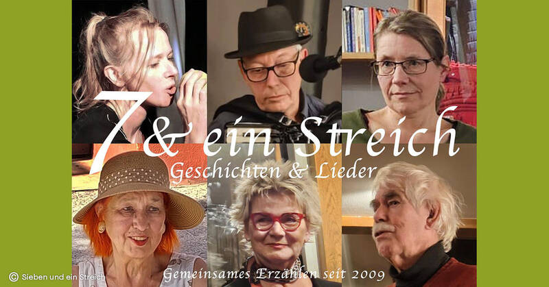 Verleiht ein Abschied Flügel, macht Leidenschaft blind, hinterlässt die verzehrende Flamme der Sehnsucht nichts als ein Häufchen erkalteter Asche? Von all dem erzählt in freier Rede und musikalisch begleitet die Gruppe Sieben und ein Streich: Geschichten von überall und hier, spannend, unterhaltsam, nachdenklich, zum Schmunzeln, wahr und ausgedacht.