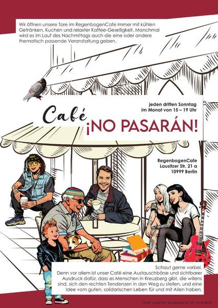 Unser Café ist ein offener Treffpunkt für alle, die sich rechten Tendenzen in den Weg stellen wollen und eine Idee vom guten, solidarischen Leben für und mit Allen in Kreuzberg (und darüber hinaus) haben.